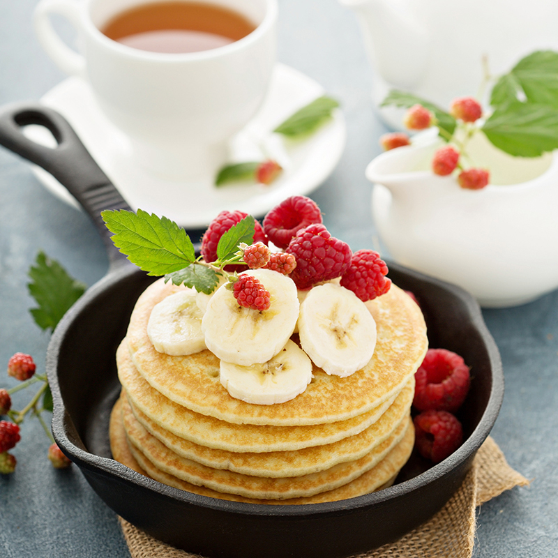 - Sirve los pancakes con alegría y sorprende a mamá con este dulce desayuno. Puedes acompañarlos con miel, banano y arándanos, o alguna fruta que sea de su agrado.